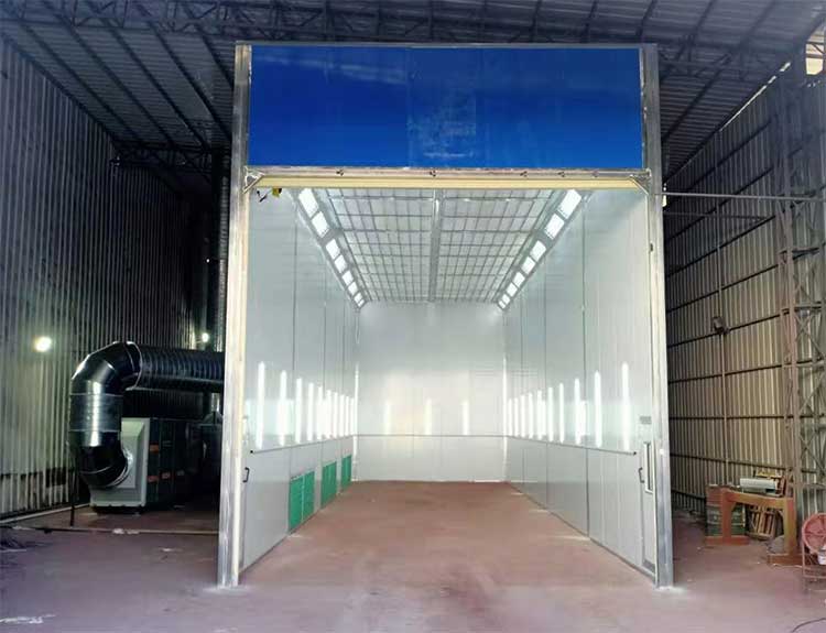 ?噴漆室:噴漆時(shí)具備通風(fēng)、照明、空氣凈化,并應(yīng)具備電源缺相報(bào)警、電壓過高或過低報(bào)警功能。噴漆室采用上部送風(fēng),側(cè)部排風(fēng)的無(wú)泵水簾式漆霧處理結(jié)構(gòu)。